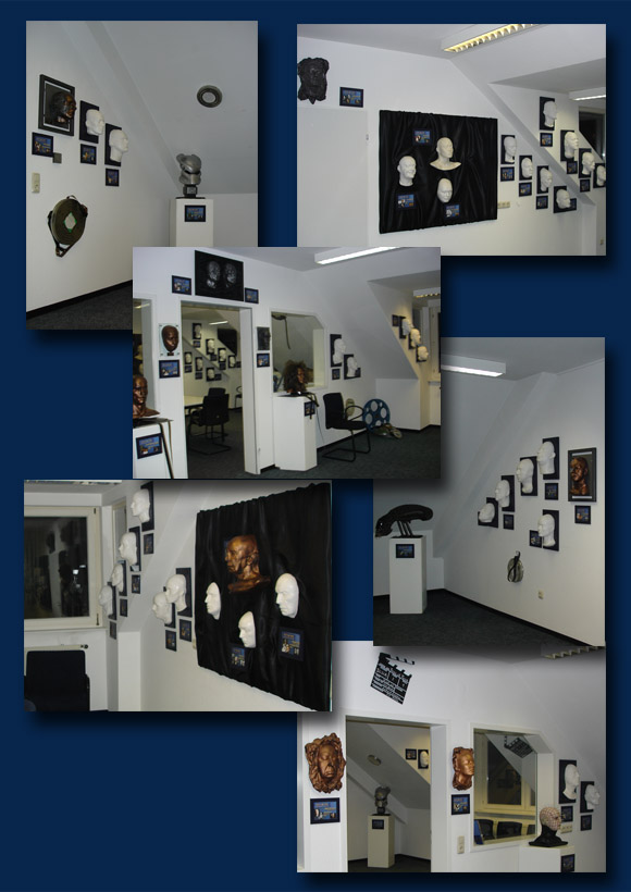 Über 70 Lebendmasken stellt Eckhard Schütze aus. Neben großartigen Stücken aus Filmen und TV, die fast jeder kennt, wie z.B. Der Pate, Braveheart, Terminator, Cleopatra, Star Trek oder Akte X, werden auch echte Raritäten gezeigt. Darunter unter anderem das Original-Relief der isländischen Sängerin Björk, eine Replik des Malteser Falken aus dem gleichnamigen Film oder ein lebensgroßer Alien-Schädel aus Alien III und ganz aktuell Angelina Jolie und Brad Pitt aus dem Blockbuster Mr. & Mrs. Smith.